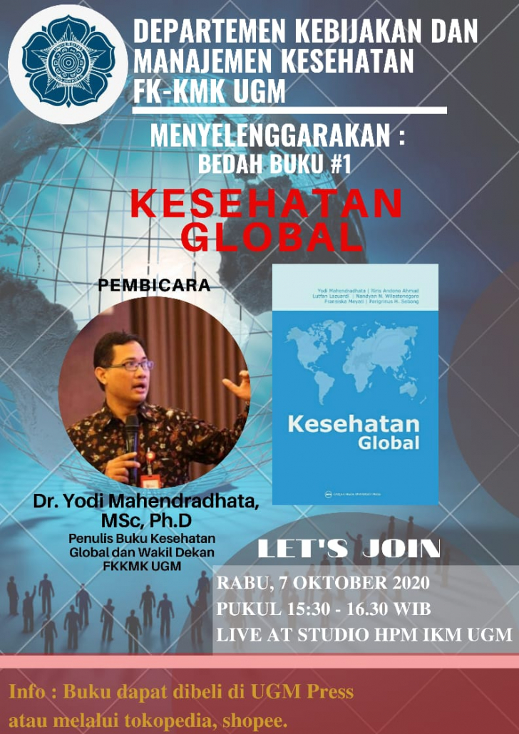 Departemen Kebijakan dan Manajemen Kesehatan serta Program Studi Magister Ilmu Kesehatan Masyarakat FK-KMK UGM akan menyelenggarakan kegiatan rutin Bedah Buku. Kegiatan ini akan mengulas buku-buku menarik terkait kesehatan dalam dua tahap. Tahap I bertujuan untuk mengenalkan buku agar menarik pembaca untuk membaca terlebih dahulu. Kemudian pada tahap II akan mengundang pembahas untuk berdiskusi dan tanya jawab terkait isi buku lebih dalam.